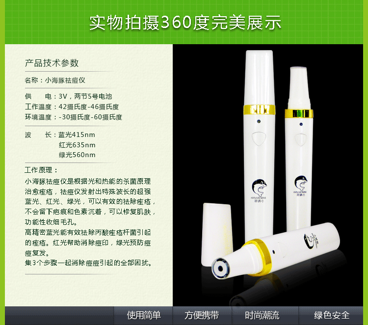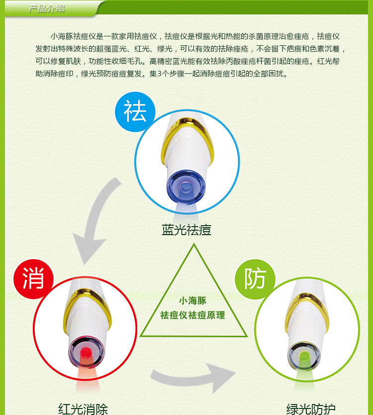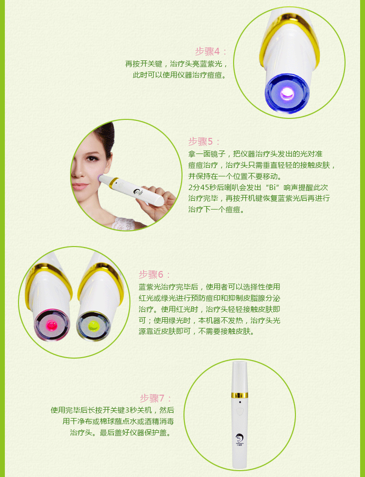 | 产品名称 : | 祛痘美容仪器 红蓝绿光祛痘光子嫩肤收缩毛孔 去痘印神器 美脸仪 |