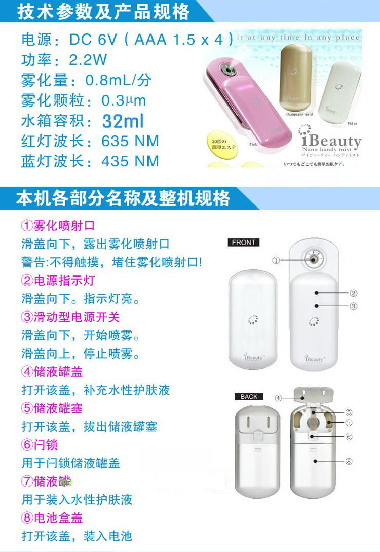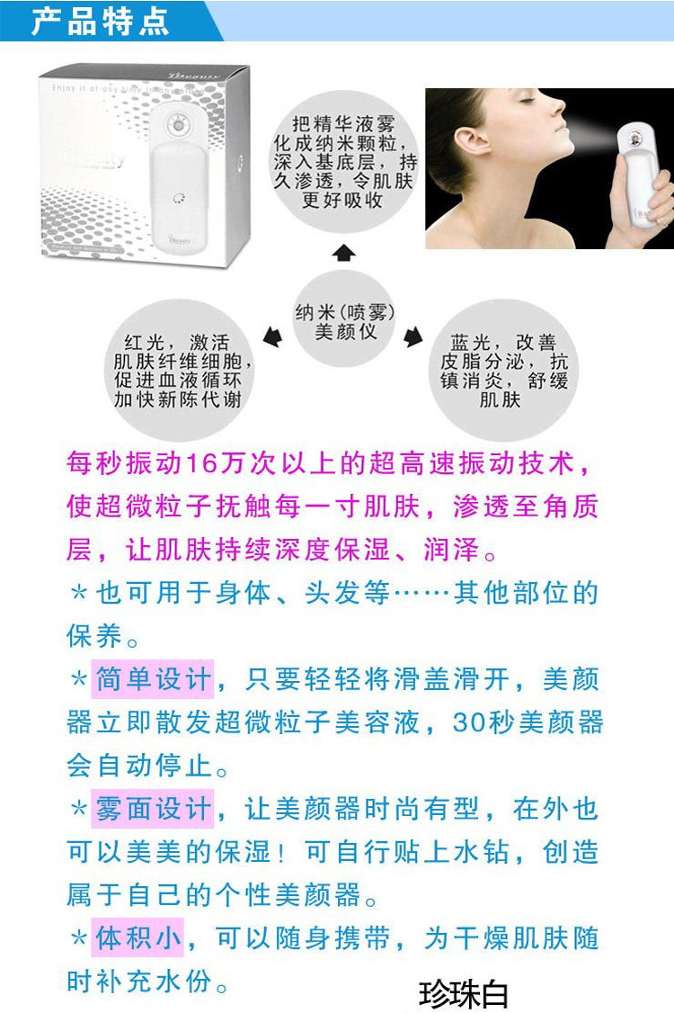 | 产品名称 : | 美容喷雾器 纳米喷雾美容仪 保温补水美仪器 补水神器 |