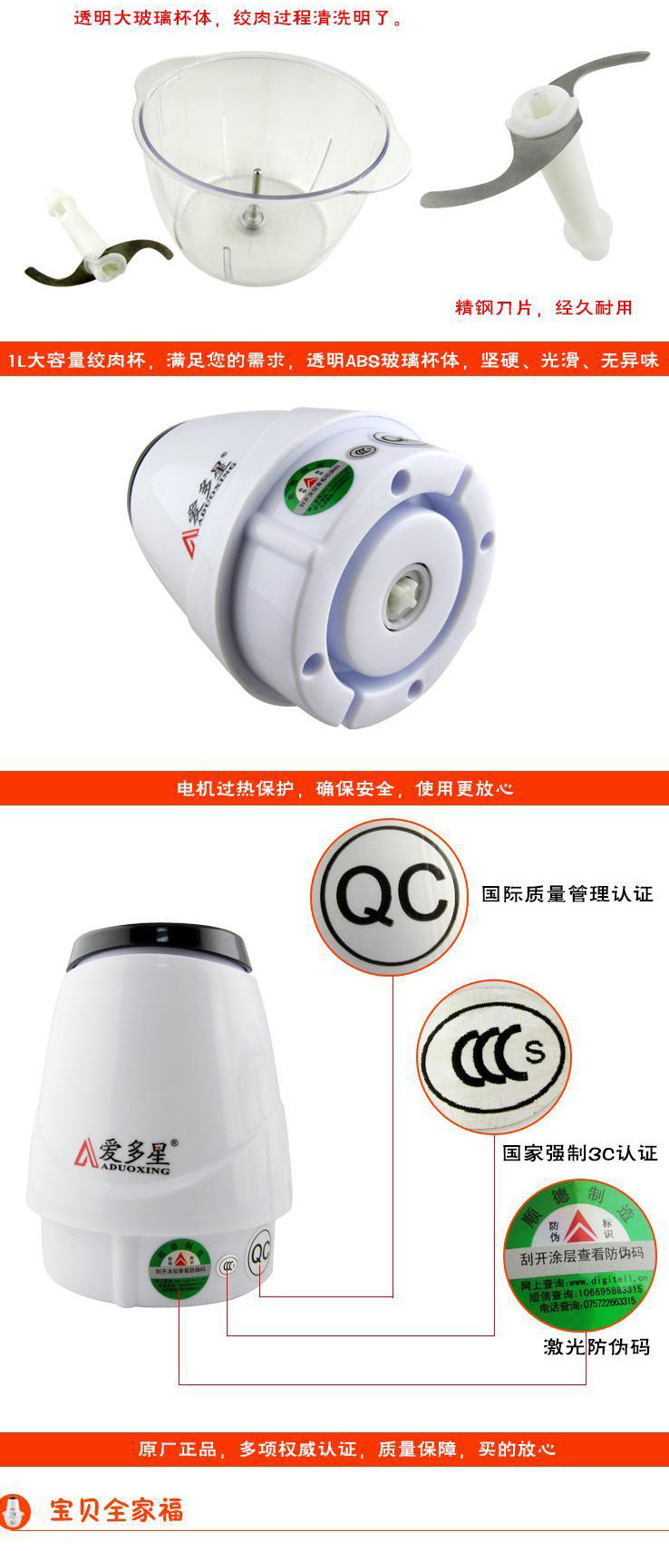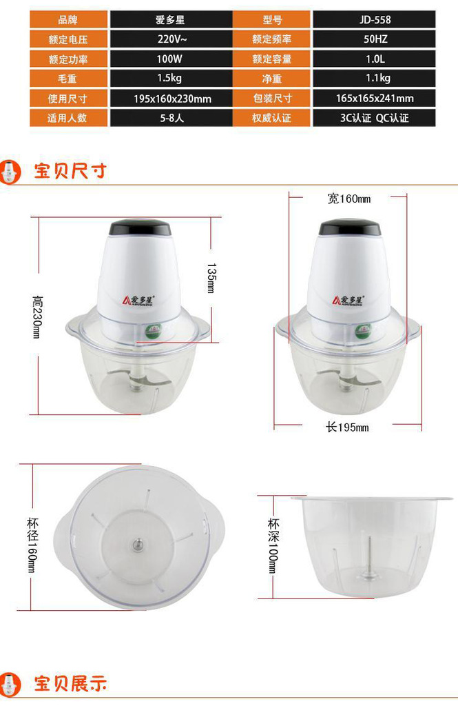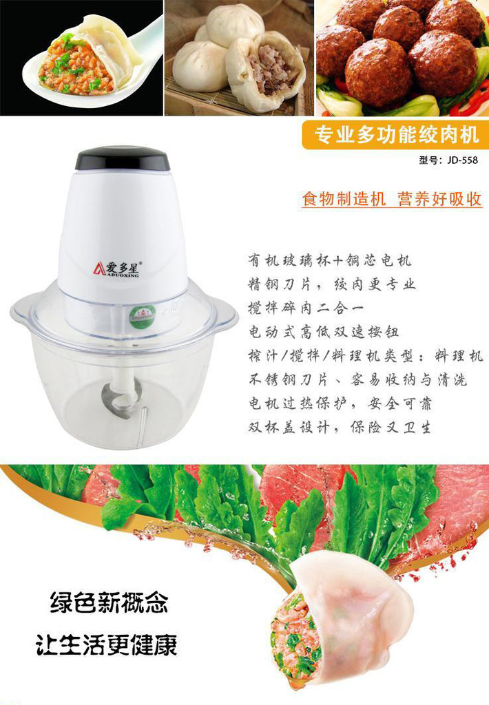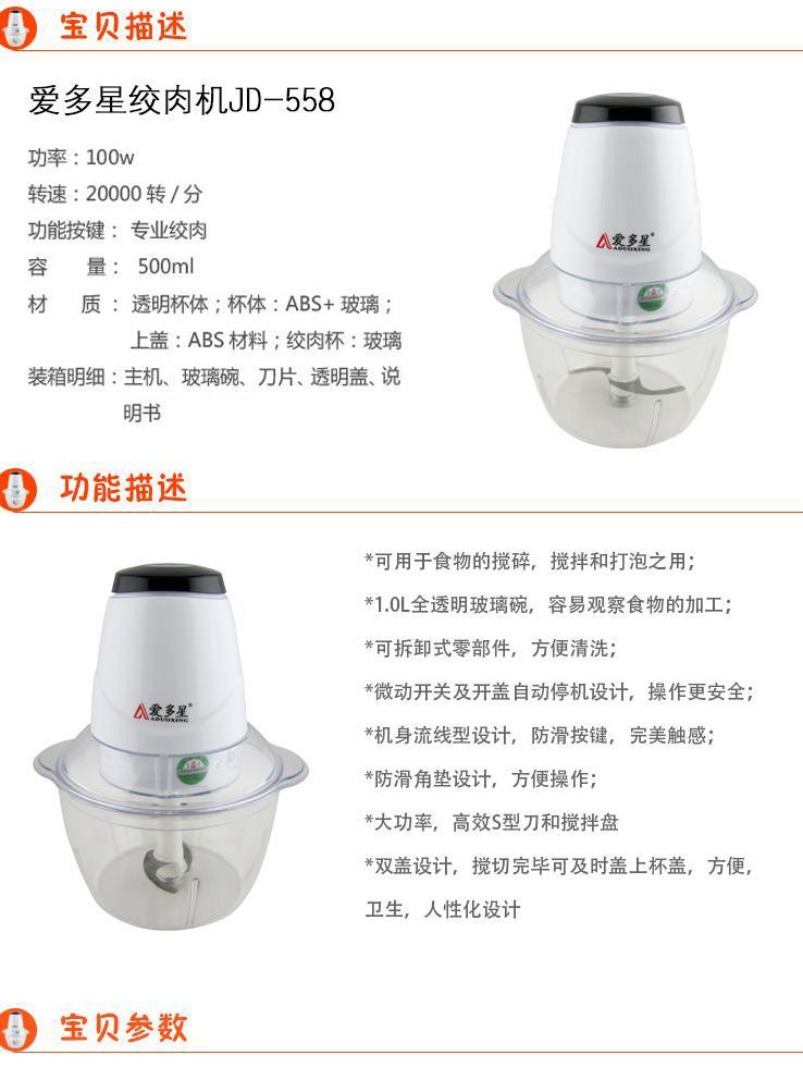 | 产品名称 : | 爱多星JD-558 电动家用绞肉机 搅拌机 多功能绞肉机 |