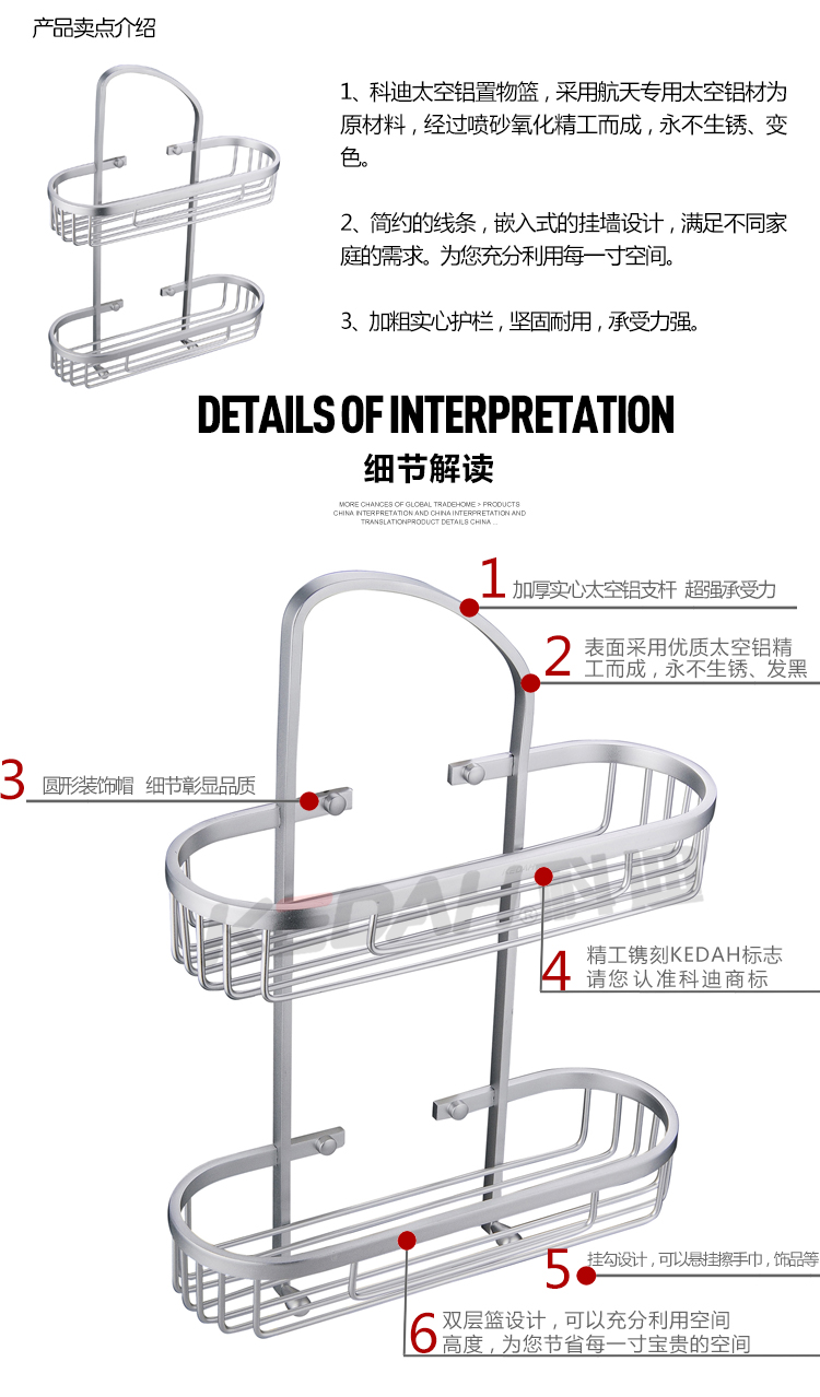 | 产品名称 : | 双层铝篮卫浴置物架 |